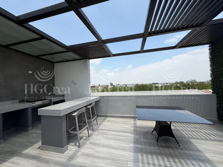 Departamento en Venta en Zona Linda Vista, 83m2 de construcción. Excelente opción para vivir o para invertir. Excelente ubicación con vías rápidas para llegar al centro de Monterrey, Guadalupe, Apodaca y Escobedo. Centros comerciales, hospital, tiendas de auto servicios a cuadras de distancia. El departamento cuenta con 2 recamaras, 2 baños completos, sala, comedor y cocina. Tiene 50m2 de roof garden con medio baño, espacio para asador, techo de pergolado y bodega. Amenidades como alberca, áreas verdes, cancha pádel, juegos infantiles y área para mascotas. Cuenta con 2 espacios de estacionamiento.